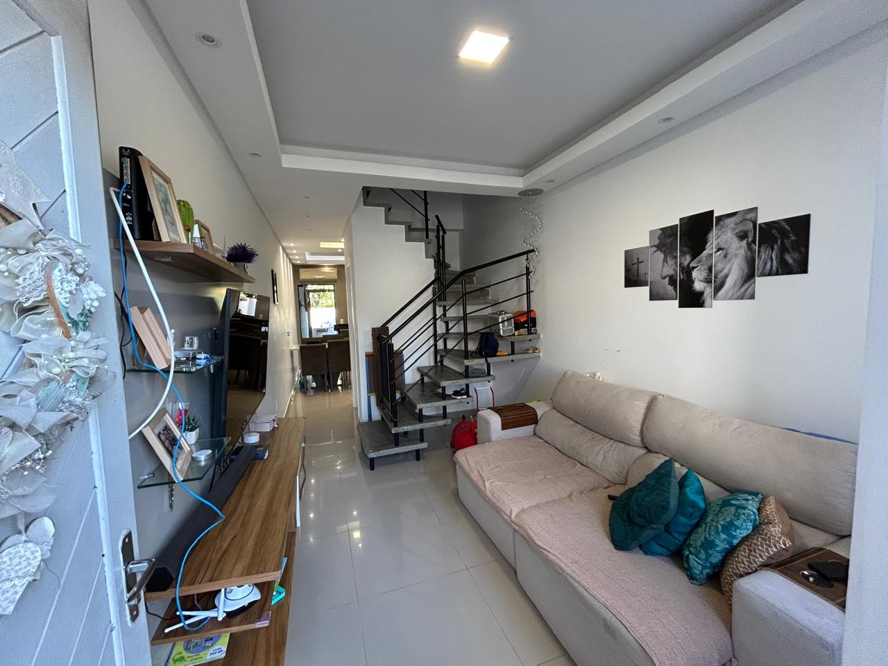 🛋 Sala de estar com painel para TV, criando um ambiente acolhedor para a família e amigos.