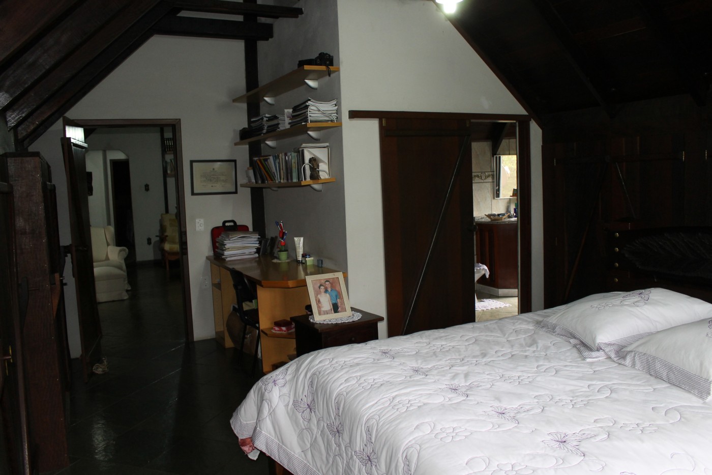 A residência principal, com um charmoso design europeu, traz um ambiente acolhedor e sofisticado.