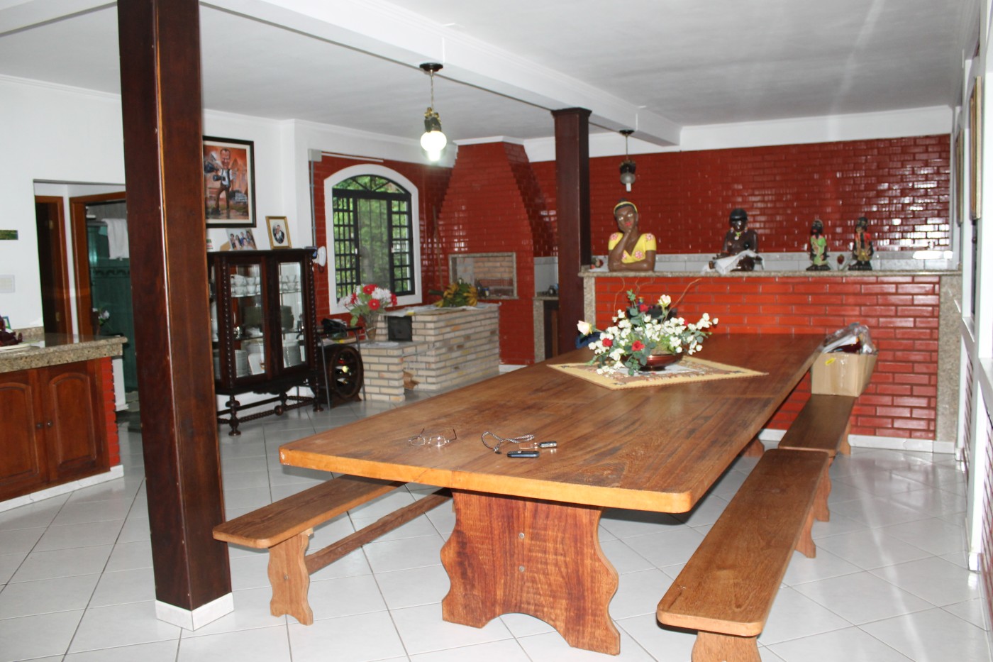 Outro destaque da propriedade fica por conta do galpão coberto de 450m², que oferece grande versatilidade. Além de ser perfeito para garagem e armazenamento, este espaço é ideal para grandes eventos, como festas de empresas, celebrações, convenções ou até mesmo locações para eventos privados.  Com fogão a lenha, churrasqueira, pia de louça, lavanderia, mesas e bancos, ele já está pronto para receber grandes encontros com total comodidade. Com três banheiros e capacidade para acomodar muitos convidados, o galpão se adapta facilmente a diversos tipos de necessidades, tornando-se uma excelente fonte de renda extra para quem deseja explorar o potencial do local.